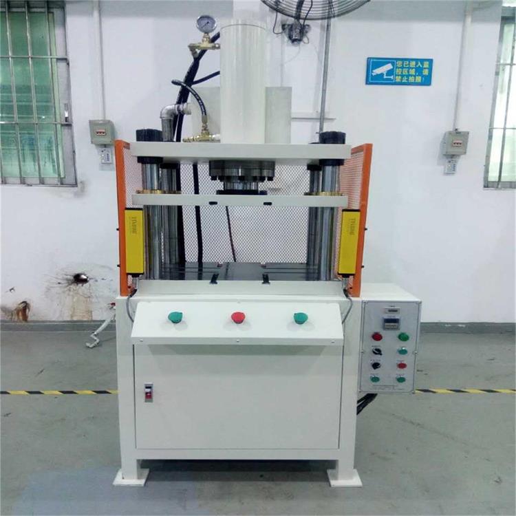 1.四柱油壓機采用四柱式開放空間,四柱配合精密導套,平穩(wěn)性高,可適合不同產品加工;